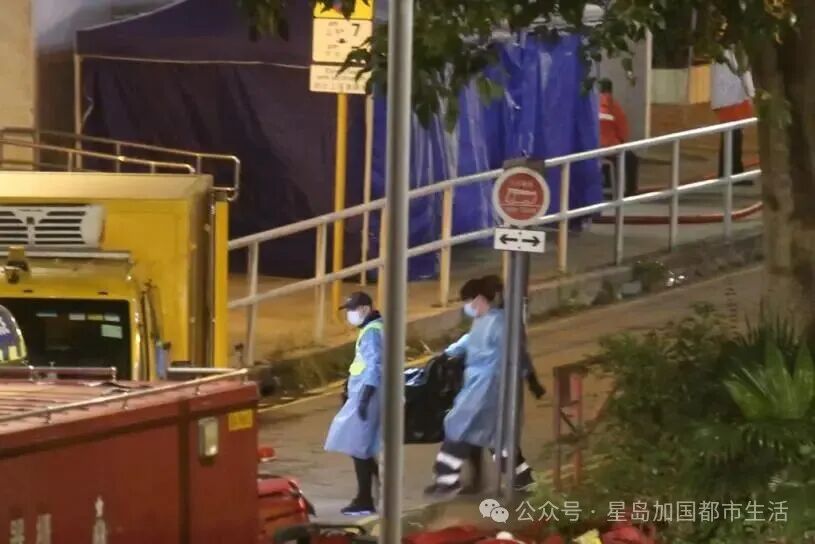 消防處通宵逐層破門搜索,7部鋼梯車從外牆持續射水。現場溫度極高,有大量求助個案仍待救援。屍檢人員清晨從單位抬出5具遺體,其中兩具疑為
