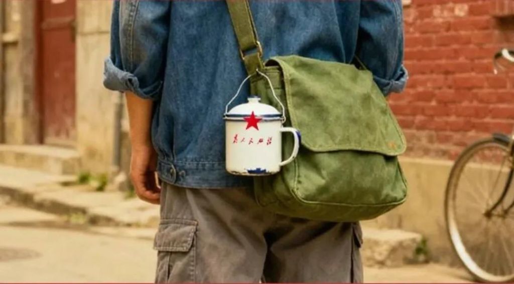 隔壁的爷爷表示,他们的“包挂”是搪瓷杯。二十世纪五六十年代,流行将搪瓷杯挂在邮差包上,美观又实用。(图/《