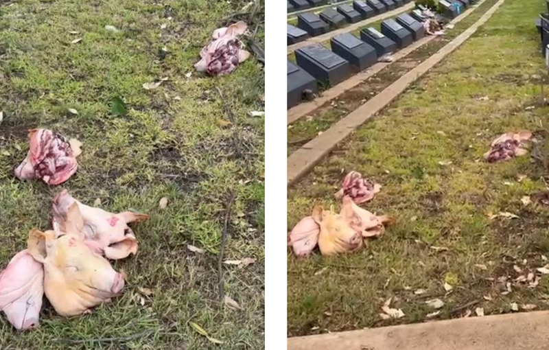 新南威尔斯州警方证实,上午6时接获报案,指位于纳雷兰(Narellan)理查森路(Richardson Road)的墓地入口处发现动物遗骸。警方赶抵现场后发现数颗猪头,随即封锁现场进行搜证并将其移除。由于猪肉在