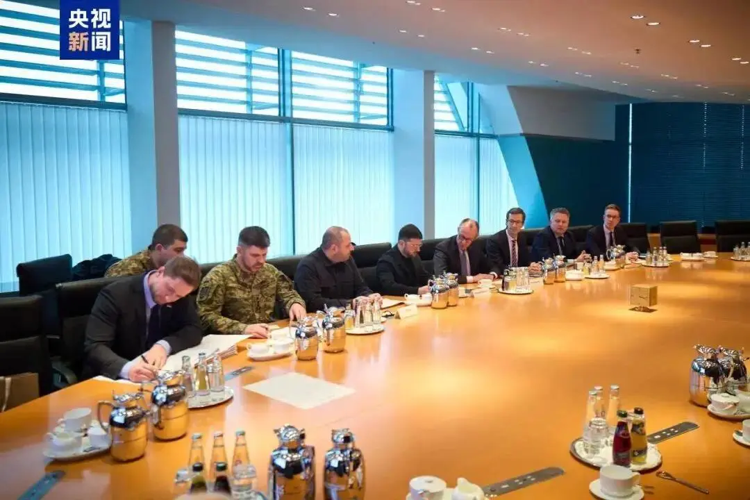总理府。德总理默茨作简短欢迎后,立即退出会谈,只留下其外交与安全政策顾问绍特尔在现场主持会谈。