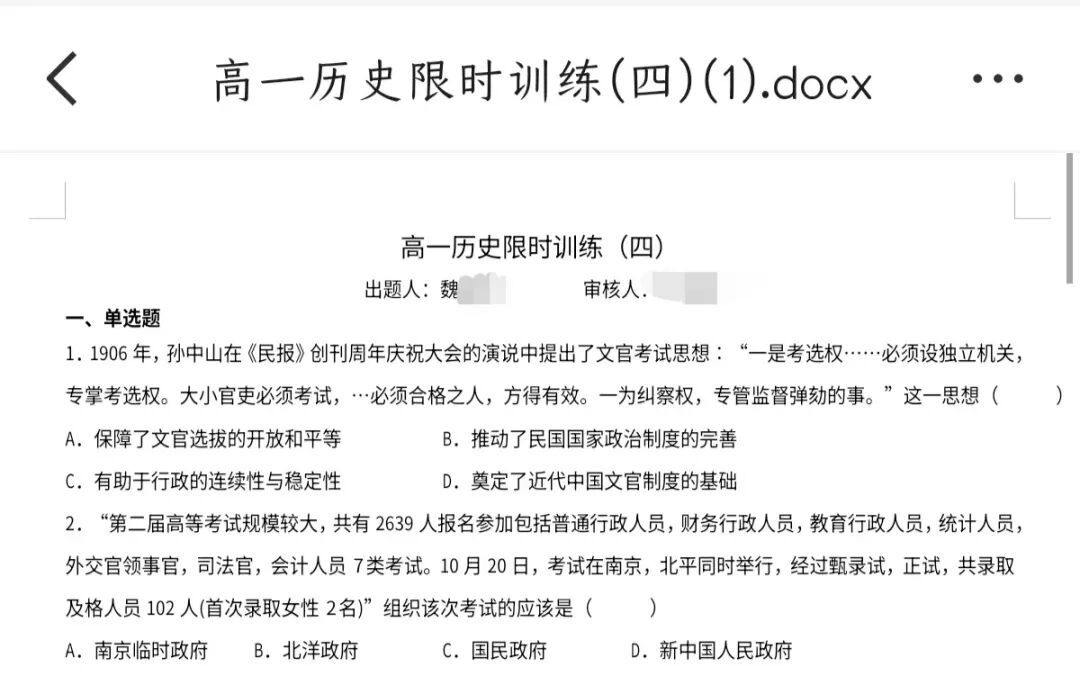 圖丨陳楚保留的高一時期魏某出的歷史試卷