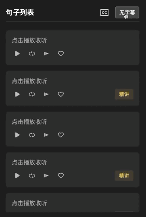 还可以「中英双语-仅英语-无字幕」自行切换,喜欢的句子还能收藏起来??。