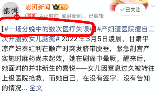 同一时刻挂在热搜上的另一件事,“一场分娩中的数次医疗失误”……“数次失误”,4个字,触目惊心。当然,这也像一种“变多”的征兆。