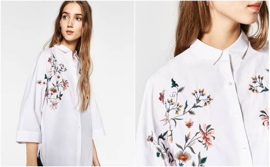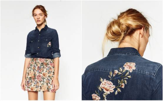 要走帅气风,牛仔衬衫你们每个人都有一件吧?Zara今年这件版型也是利落挺括,但仔细一看胸口的刺绣以及背后的花卉设计,写满了“心有猛虎,细嗅蔷薇”。 ▼