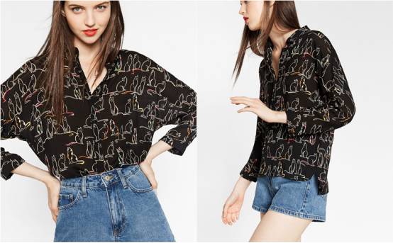而最后这件印花……(模特太美先让我舔个屏)一秒拉回现代感!远看是兔子近看是猫的线条设计超有创意,而且线条自带很棒的配色,以至于这件衣服看起来就会发光!