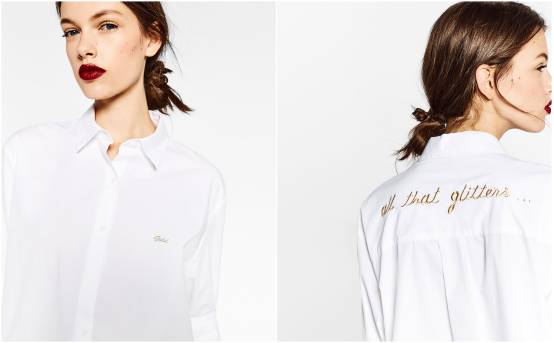 正面乍一看是非常乖的经典白衬衫,其实背后有绣上金色的态度:all that glitters... 后面会写什么呢?你们猜:)