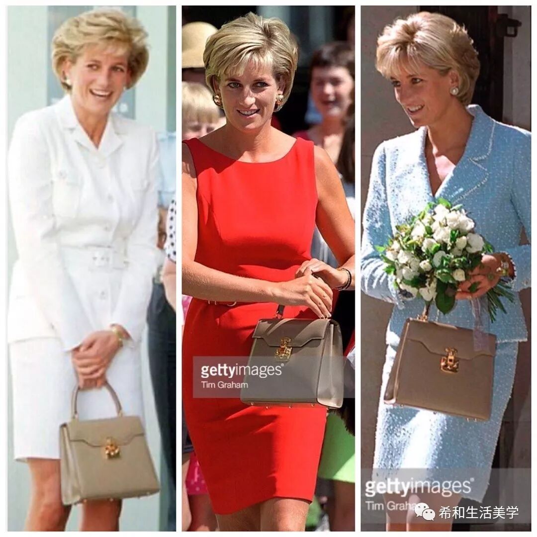 戴安娜王妃拿的这两只都是GUCCI的VINTAGE,香槟色也超级优雅温柔呀。