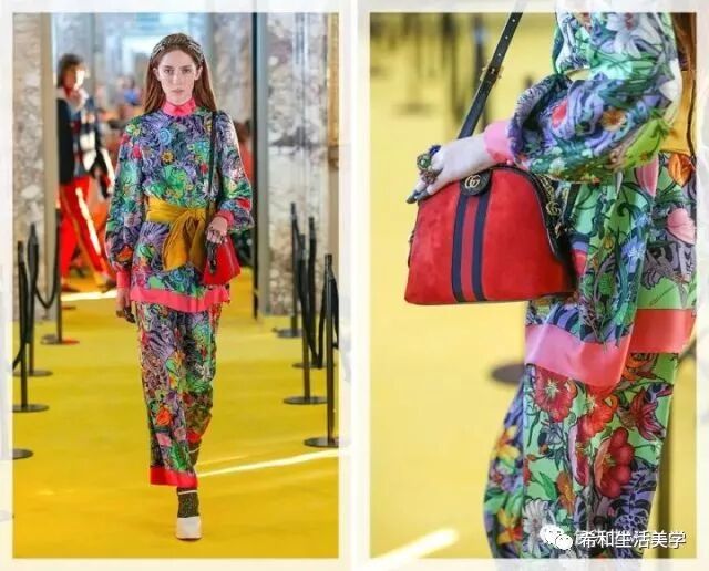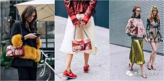 不过搭配印花的衣服,需要有包上面的花的某一种配色才能较为呼应。衣服的颜色款式我觉得尽量简洁,也可以极端繁复,但是这个和谐的尺度一般人把我不好,包上面如果很多印花,衣服上简洁为安全。