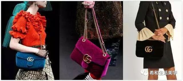 个人超级爱丝绒质地的Marmont,复古到了极致再极致,黑色高贵紫红色性感。今年又流行一切丝绒元素的设计,真是心里的草啊长成了草原。