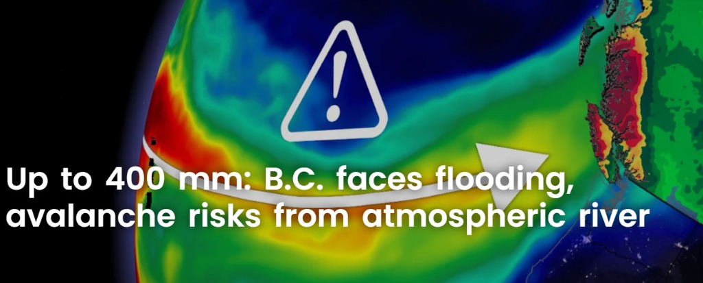 一场反常的大气河流事件即将影响BC省。它将带来暴雨、冰点升高和积雪快速融化,从而导致严重的洪水和雪崩风险。大气河流将给BC省沿海地区带来强降雨。