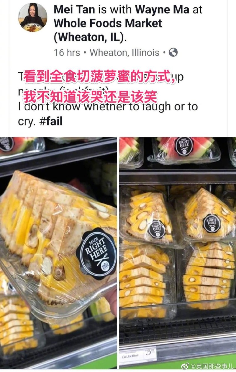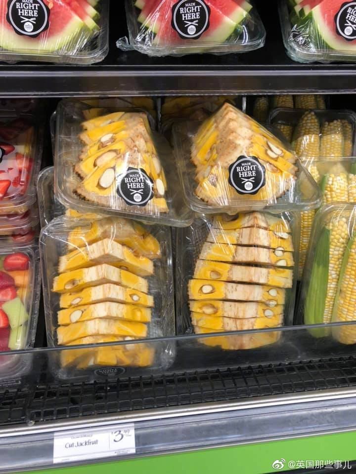 一位亚裔妹子在美国一家超市看到了切好待售的菠萝蜜…………