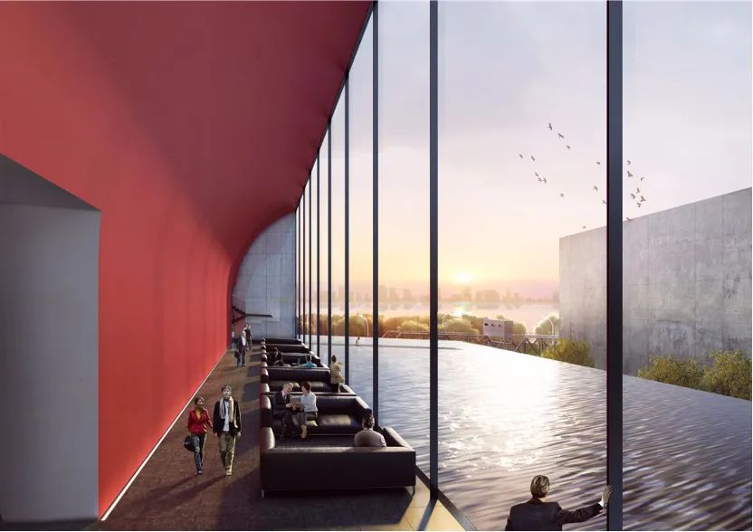 考慮到周邊是舊工業區,陳敏英不想去設計“異形”建築,像是三角形或是不規則建築,會顯得它特別突兀。她的設計是一個工業化的方正建築,鋼結構來搭建框架,內部刷上60後偏愛的紅色,可以完美融入工業區,既兼顧了傳統審美,又符合自己的理念。