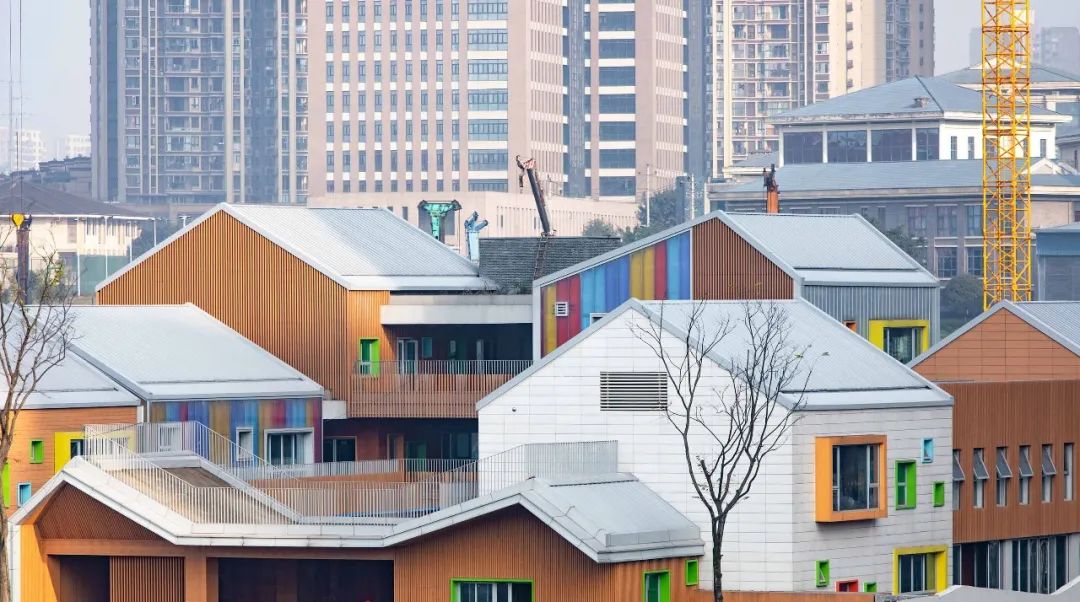 “中國的幼兒園大多強調統一性,而這個幼兒園強調歸屬感和個性化,每個教室都是孩子的‘家’,整個幼兒園是一個‘村落’,住在木頭房的孩子和住在磚頭房的孩子玩耍時,可以相互介紹自己的房子,拉近關系。”