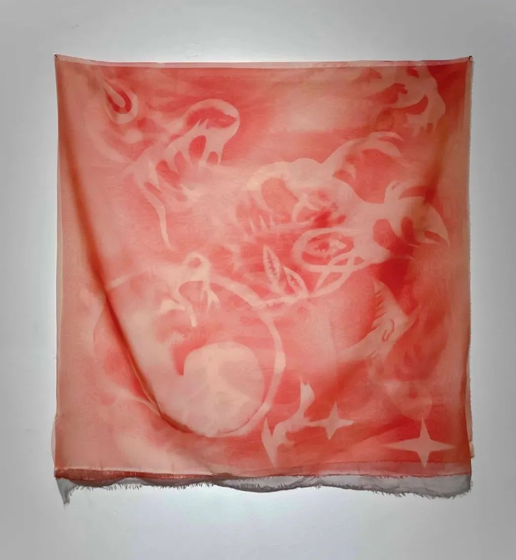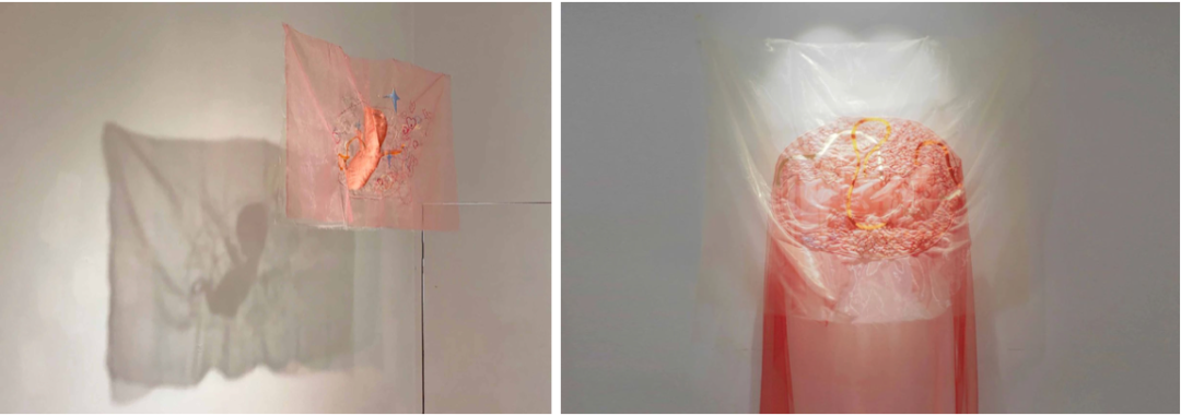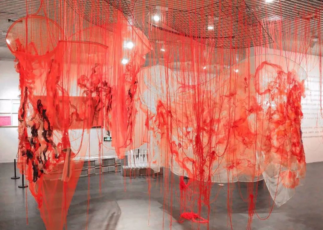 2020年,我参与了一个女性群展,在白色的主展厅前特地设计了一个红色的通道,挂上了我一幅幅的《婴儿》红纱作品,所有的观众进入和离开展厅都需要通过这个过道,仿佛在进出女性的子宫,很自然的过程。