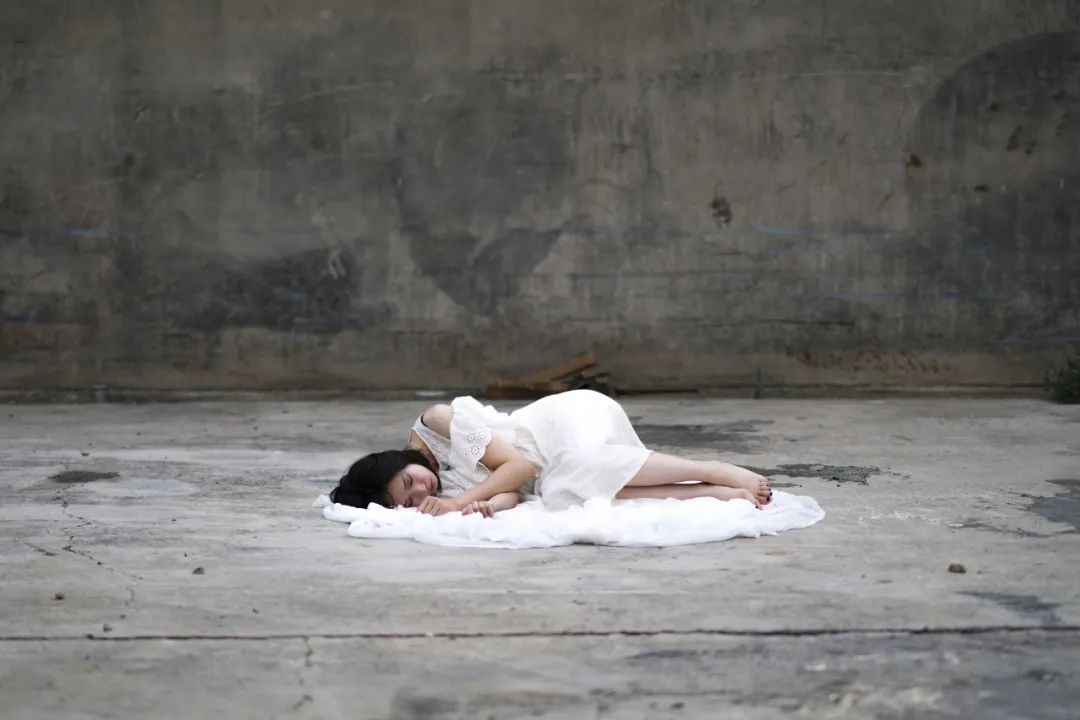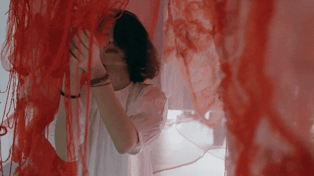 于是我就在里面用身体做了一个表演:用子宫的皮肤去包裹自己,在子宫的脉络里疼痛和挣扎,最后躺回子宫里去感受它的温暖。