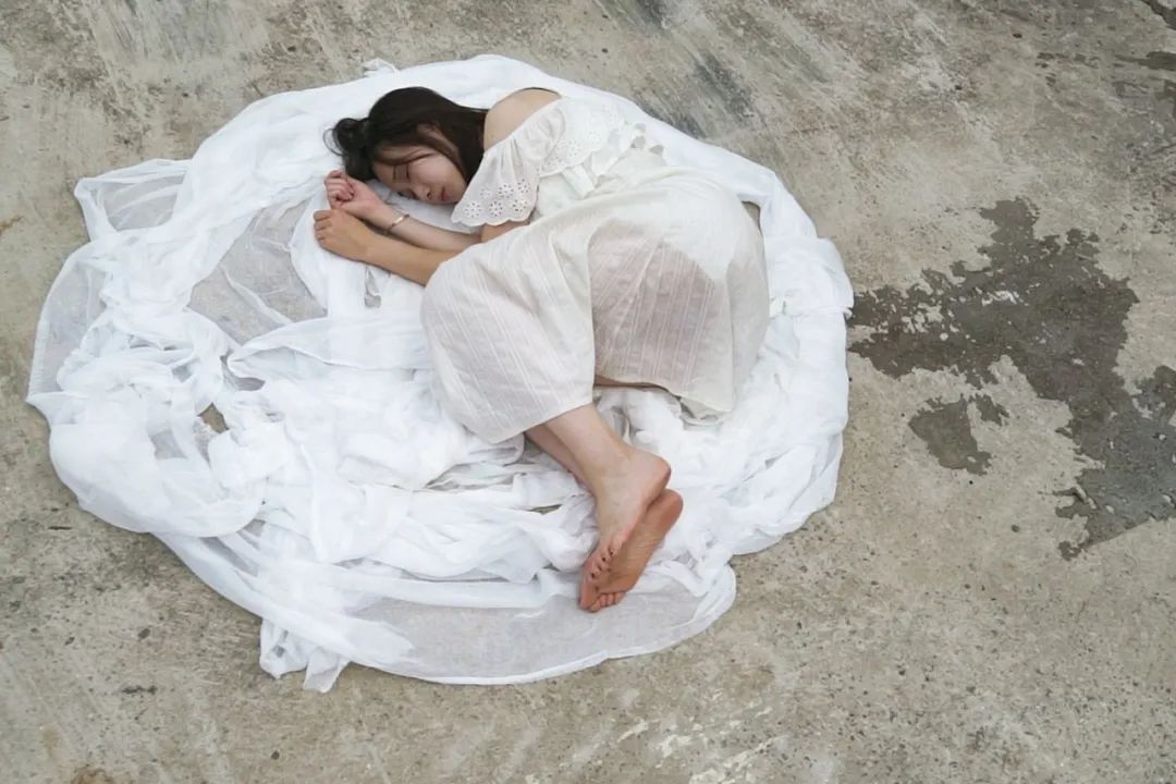 很快我们又想着如何去抵抗死亡。影像作品《始终》探讨了一个人如何从白色像胎盘一样的地方苏醒,然后慢慢意识到死亡,从不接受、到焦虑、再到反抗,最后平和接受的一个过程。
