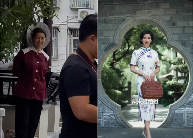 但是由专业团队打造之后,这个阿姨穿上旗袍可太美了。