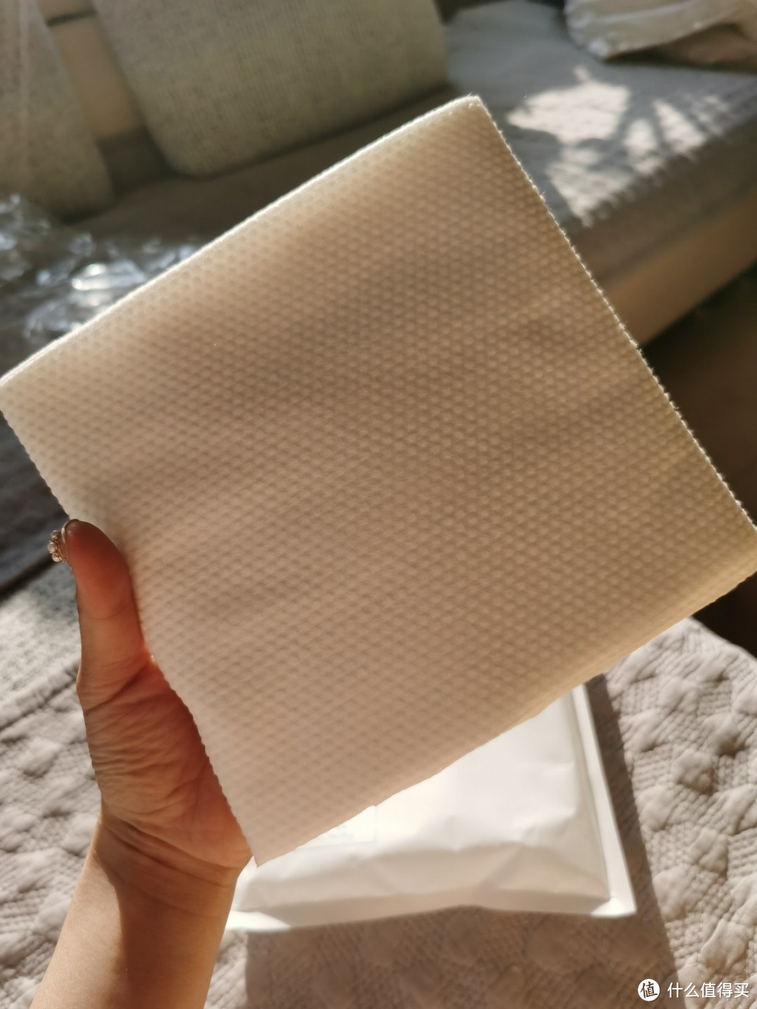 浸水后,就直接散开了,跟我们用的洗脸巾一样大小,擦洗脸非常方便。
