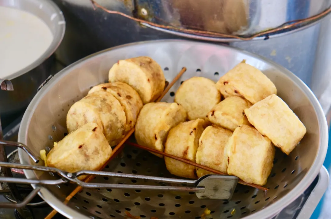 除了油灯果,这儿的炸年糕和炸王中王也是畅销货。年糕切成小片儿,炸好后涂上甜酱,美滋滋,和童年时的味道完全没差。