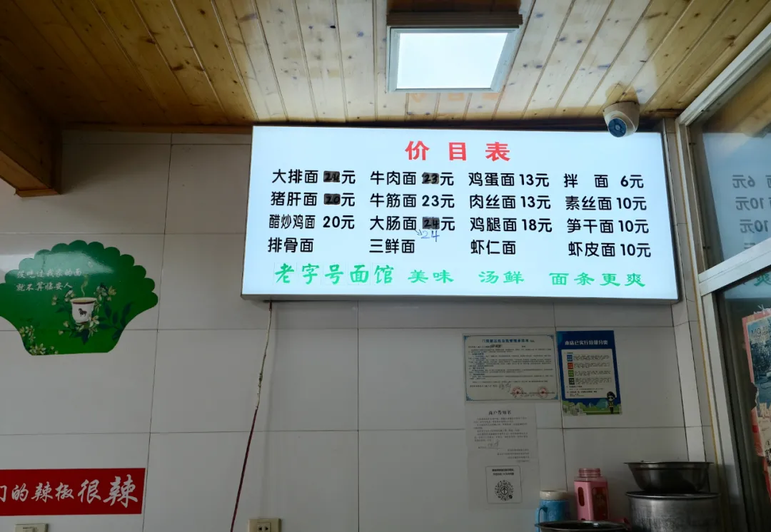最便宜的拌面6块钱,而其他带肉的面,除了荤菜以外,还可以自定义选3个素菜。