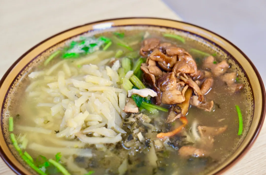 自选的素菜里一定要选笋干以及咸菜,就是那位客人说的灵魂。