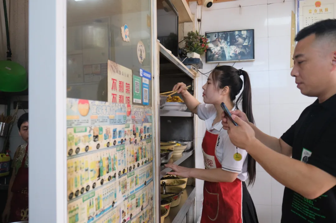 店里有位拉面西施,选菜、点单、送菜环节都是她亲力亲为,另外还有一位老奶奶负责擦桌子、捞面,苍蝇馆子有很舒适的服务。