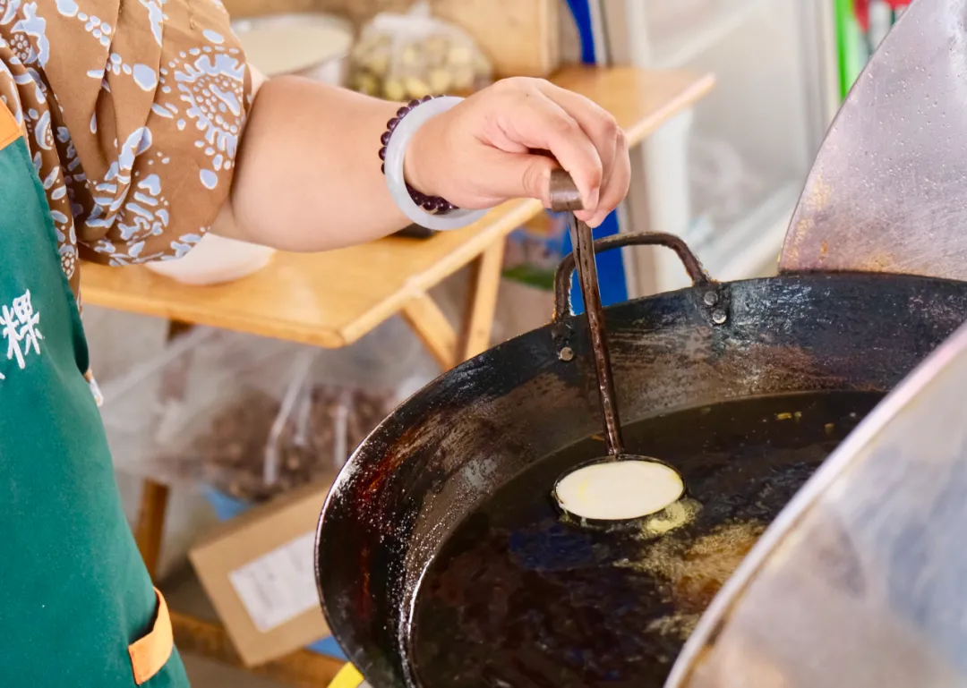 在吕家弄,我遇到了这位阔别很多年的“老友”。油灯果物价涨了好几倍,味道却一点也没变。