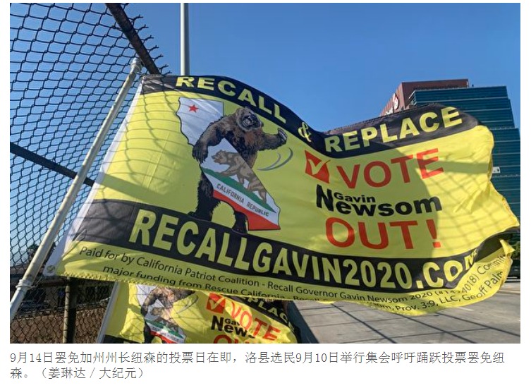 9月的加州仍然骄阳似火。但就在刚刚过去的周末,南加州的多个城市都有民众自发举行集会,他们打出“9月14日,投票罢免纽森”的横幅,呼吁加州人都出来投票,罢免现任州长加文.纽森(Gavin Newsom)。他们说,此次罢免选举的机会来之不易,加州人终于有机会改变当前的困境。千万不能错过最后的投票环节,别让之前的努力白费。