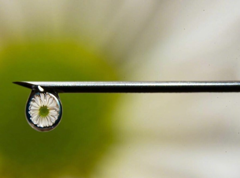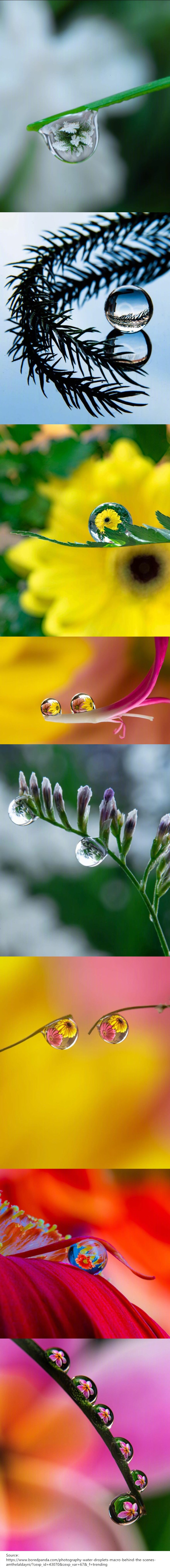 从水滴中折射的“花花世界”,像一方小天地被凝结封印,有种清澈宁静的美 (发表于4年前)