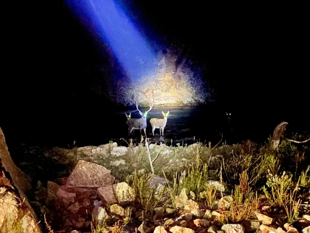 夜間行車也有一些意外收獲,出了隧道,車前方突然有一些幽微的反光,駐車仔細辨認,居然是野生鹿群,看上去是一個四口之家。鹿群可能早已習慣了往來的車輛,倒是淡定,遠遠站在那裡看著我們。而我們又驚又怕,想起藏族朋友說這山溝溝裡每天都會有狗熊造訪,停留十幾秒後趕緊繼續趕往嘉黎縣城。