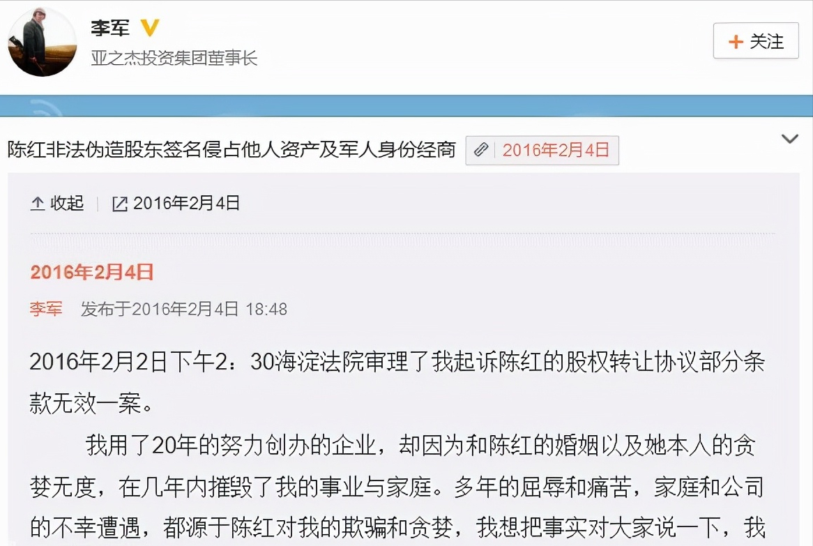 出軌整容醫生,轉移老公財產12億,“常回家看看”的陳紅太狠了 (發表於4年前)