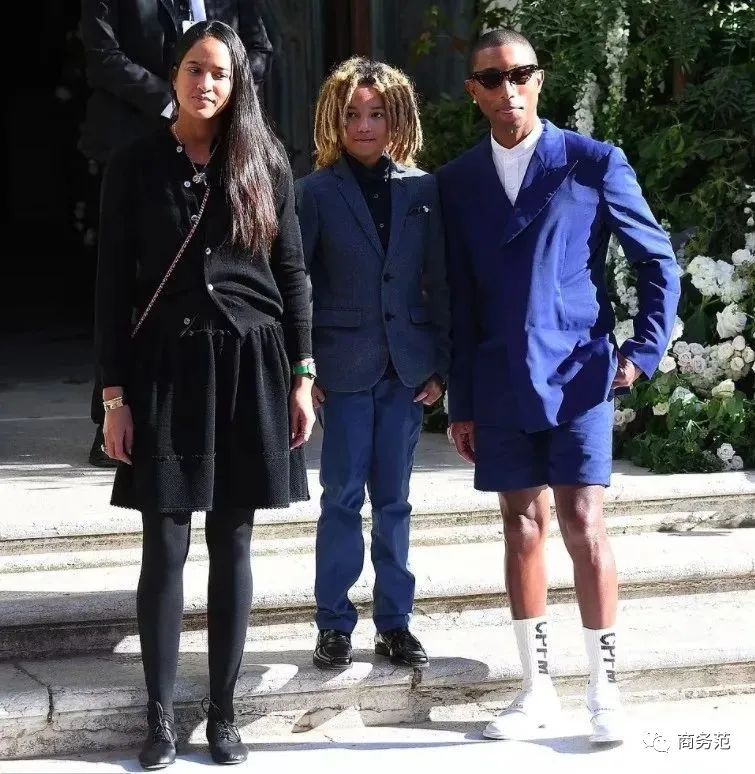 菲董Pharrell Willams一家也来到了现场,出席婚礼就像走电影节红毯一样打扮时髦又吸睛。
