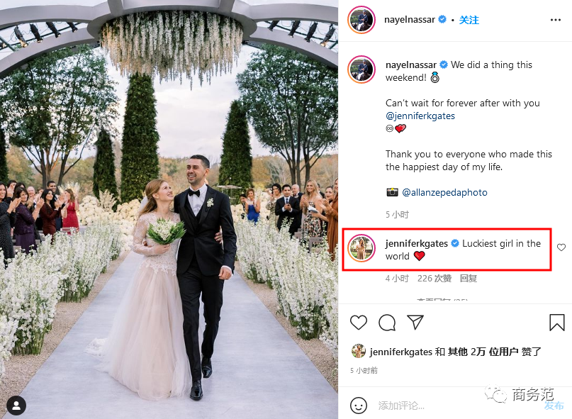 对比将来宾名单保密工作做得很严谨的盖茨一家,LVMH二公子的婚礼则更像是一场明星派对。这场婚礼邀请了大约200位来宾,领域横跨了时尚圈、娱乐圈和体育界,排面相当大。