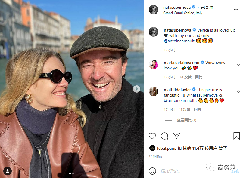 除此之外,Dior设计总监Maria Grazia Chiuri、法拉利集团的董事长John Elkann也都被报道出席。家里人也不能少,太子爷和太子妃就趁机在威尼斯旅游了一把。