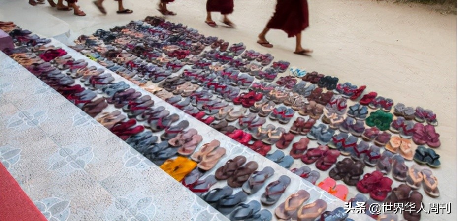 既然每天都要拜佛,拜佛時又不能穿鞋子,脫鞋很不方便。於是,易穿易脫的人字拖就成為了緬甸人的最愛。