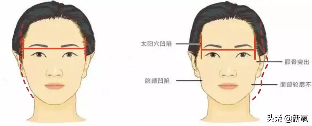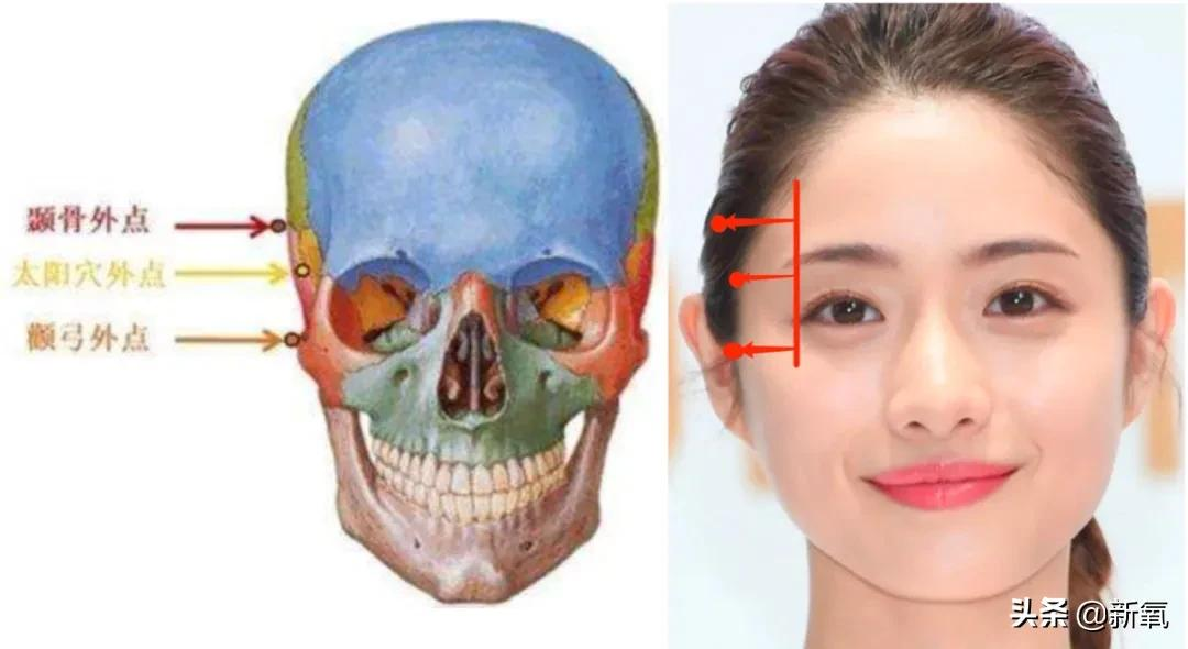 顳肌會穿過顴弓,如果顳頂骨脊和顴弓之間不夠飽滿,就會導致太陽穴凹陷,這種一般會伴有顴弓過寬的問題。