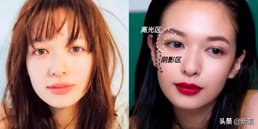 從化妝手段來說,增加太陽穴寬度最常見的方法是上高光。
