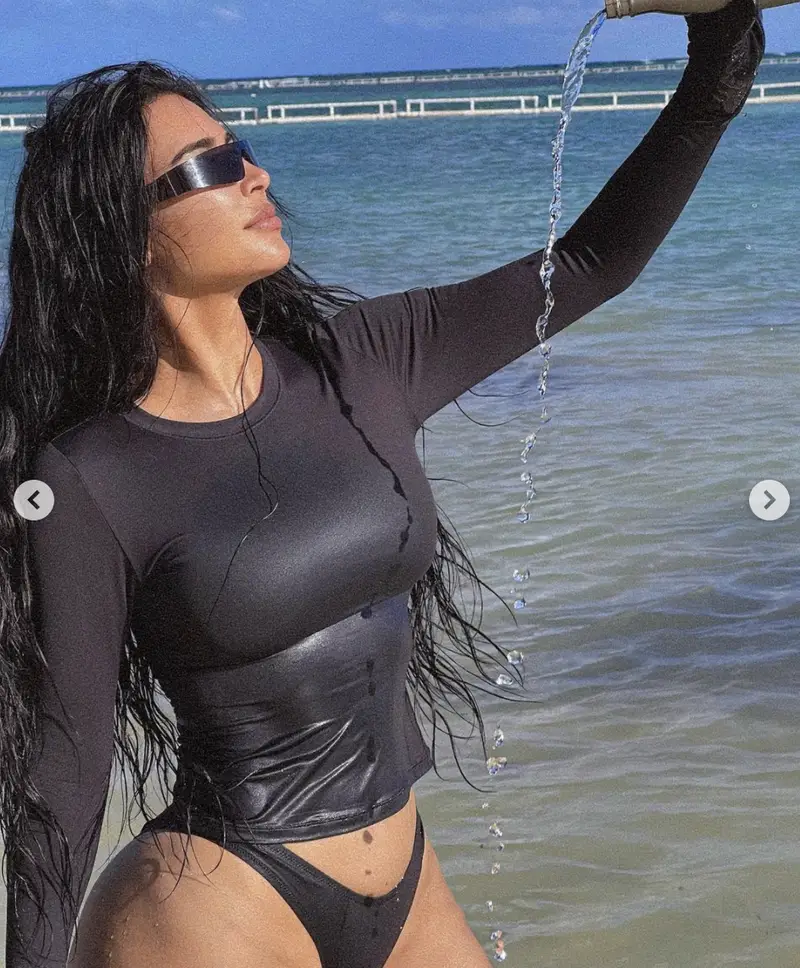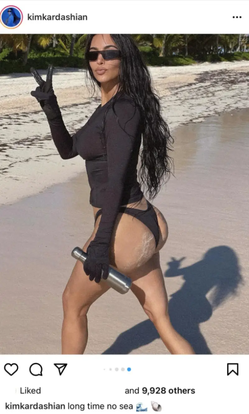但p圖這事吧,總有一天要翻車的。周二,金姐在ins發了一組比基尼美照,宣傳一波自家品牌的新產品,並配上文字:“好久不見,大海”。