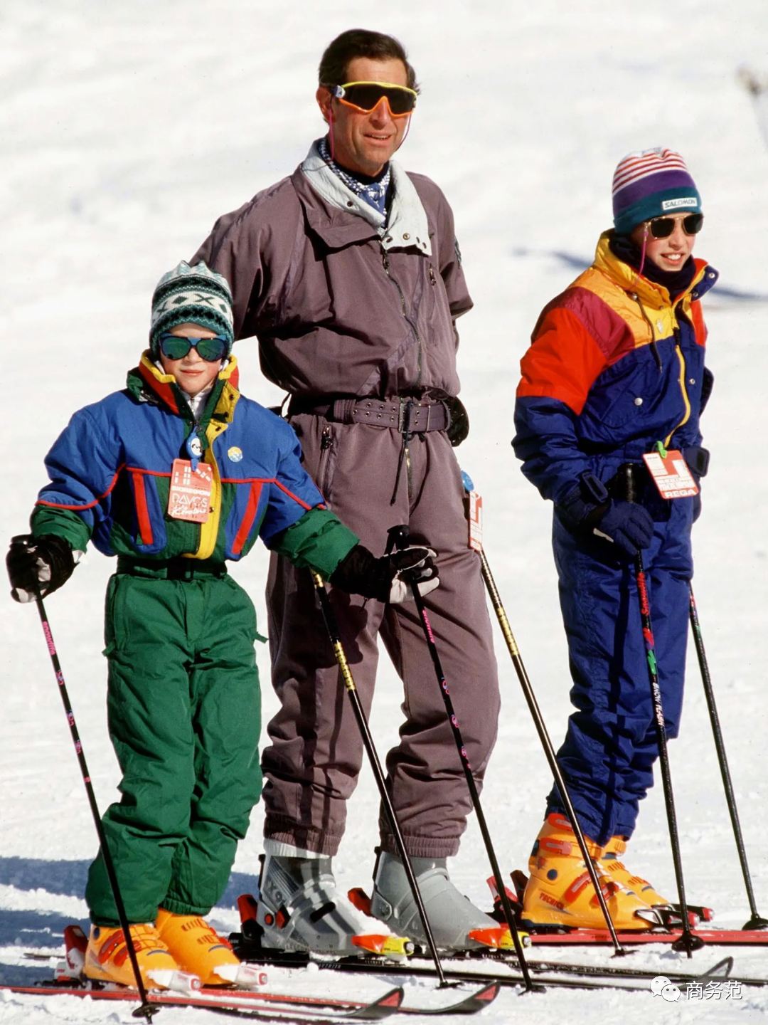还经常带着威廉和哈里一起去,两个王子从小就开始驰骋雪场了↓