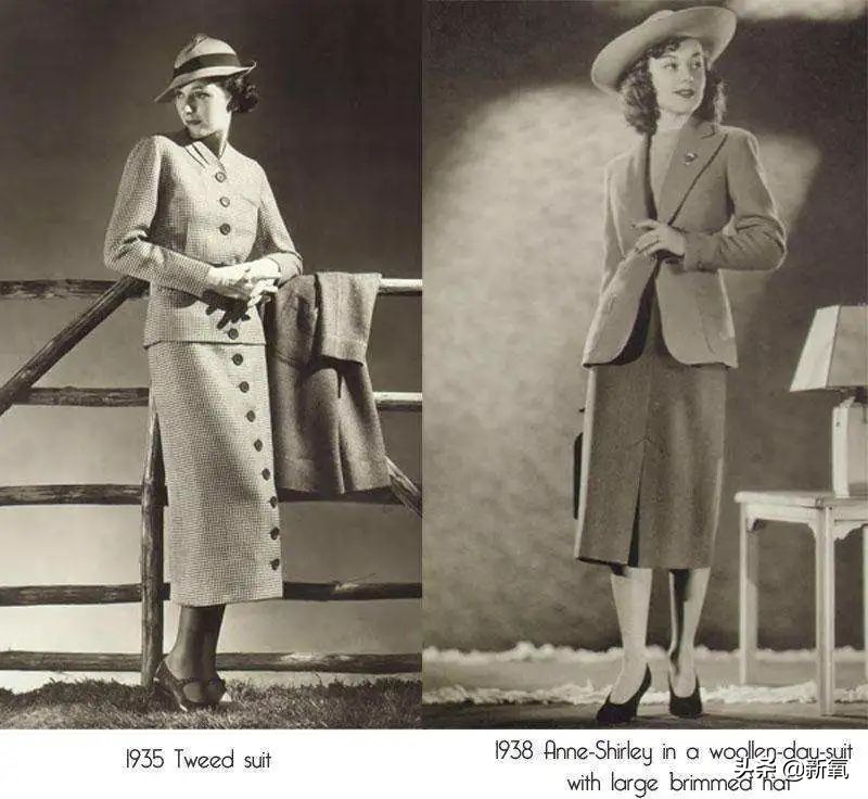 二战爆发后,繁复啰嗦的长裙失去了功能性,柔和的曲线肩颈不能当饭吃,女人顶起了半边天,也开始在社会中崭露头角,女性的服装为了实用及节俭,向利落、硬朗的方向靠拢。