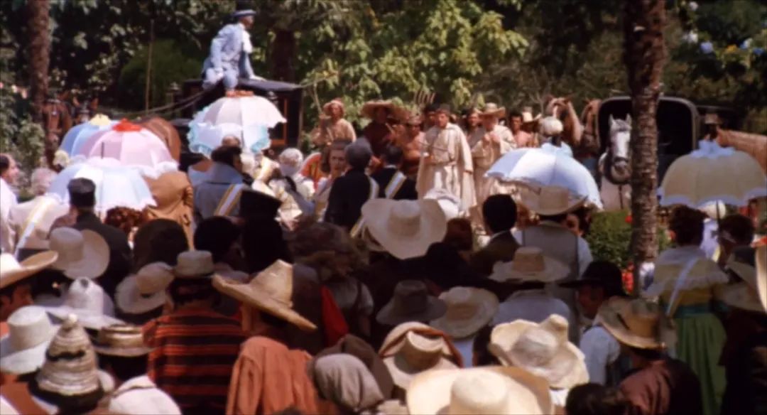 在神父的刑罰現場,法官以莫須有的罪名判決神父受鞭刑。
