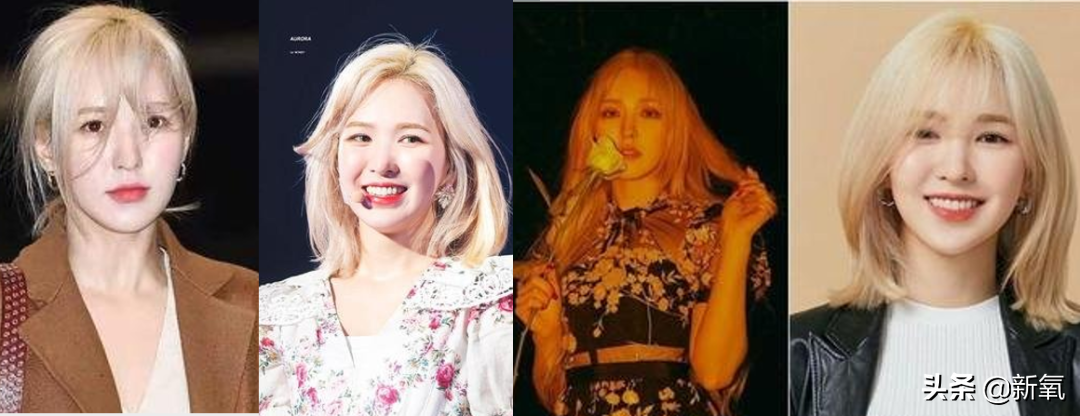 不仅是欧美人,放在韩国人身上同理,比如Wendy也很适合浅发,一方面掩护外轮廓,一方面对冲臃肿的面中。