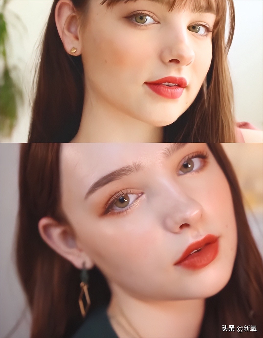 韩系妆容+欧美脸,或许在欧美的审美语境里,幼稚的像个小学生,但在东亚审美里堪称纯欲的颠峰。