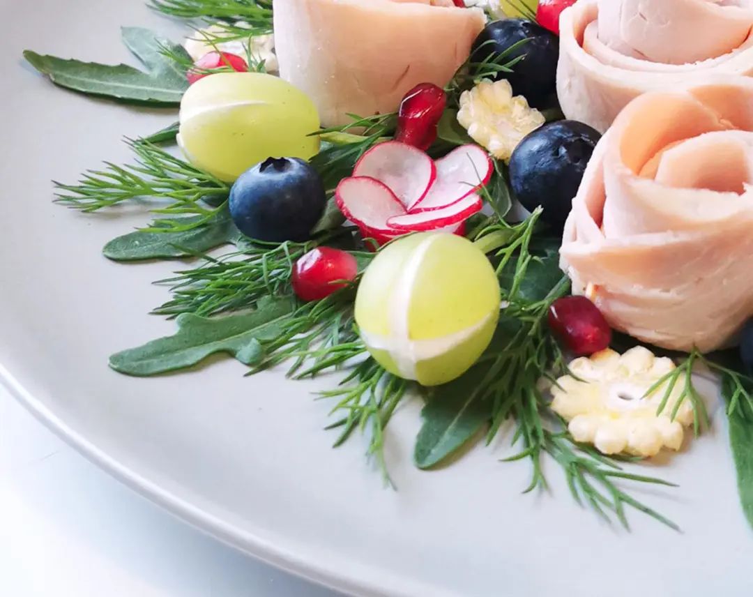 时令蔬果和瘦肉火腿片,