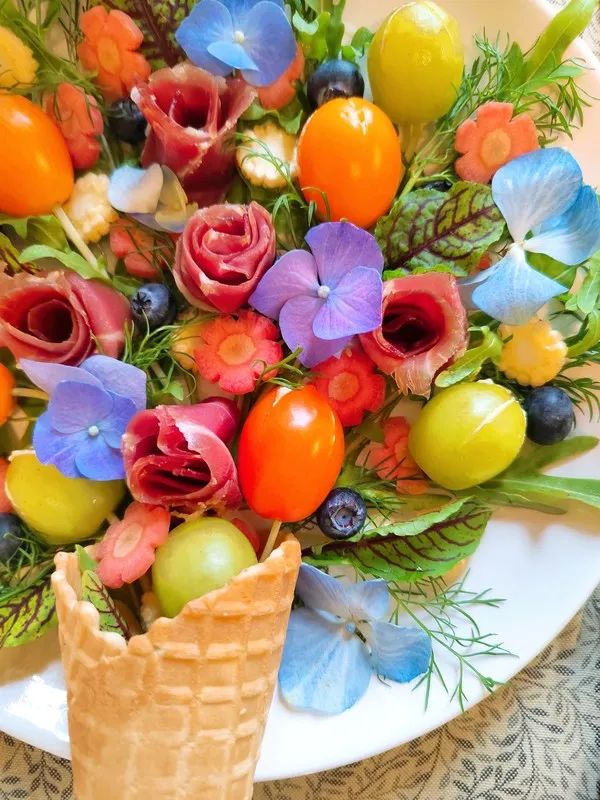 春日浪漫~花束沙拉·果蔬肉|低卡低脂滋味足|附4种花型做法