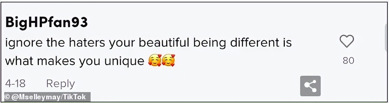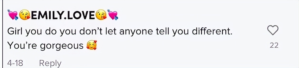 一名网友留言,自己眼睛也跟她一样,看了她的视频,让她也有了自信去展露让自己没安全感的眼睛。