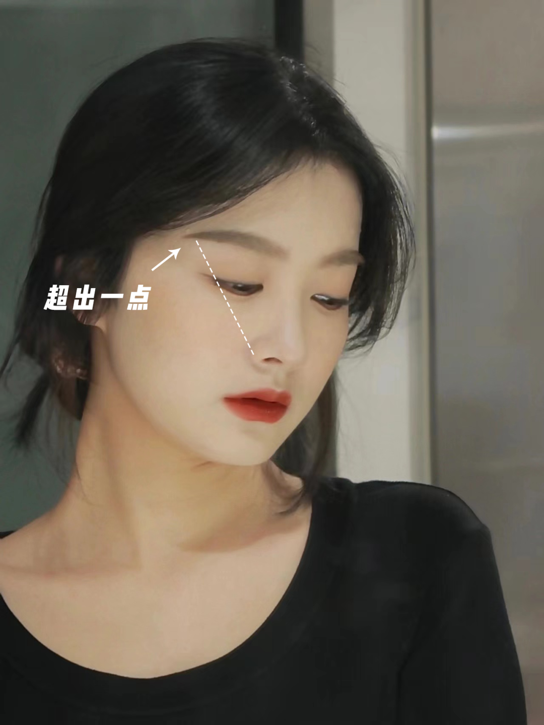 一般我们不是说,眉尾在鼻梁到眼角的延长线上嘛,那阔面脸的同学,就可以稍微超过这个点,画得长一些