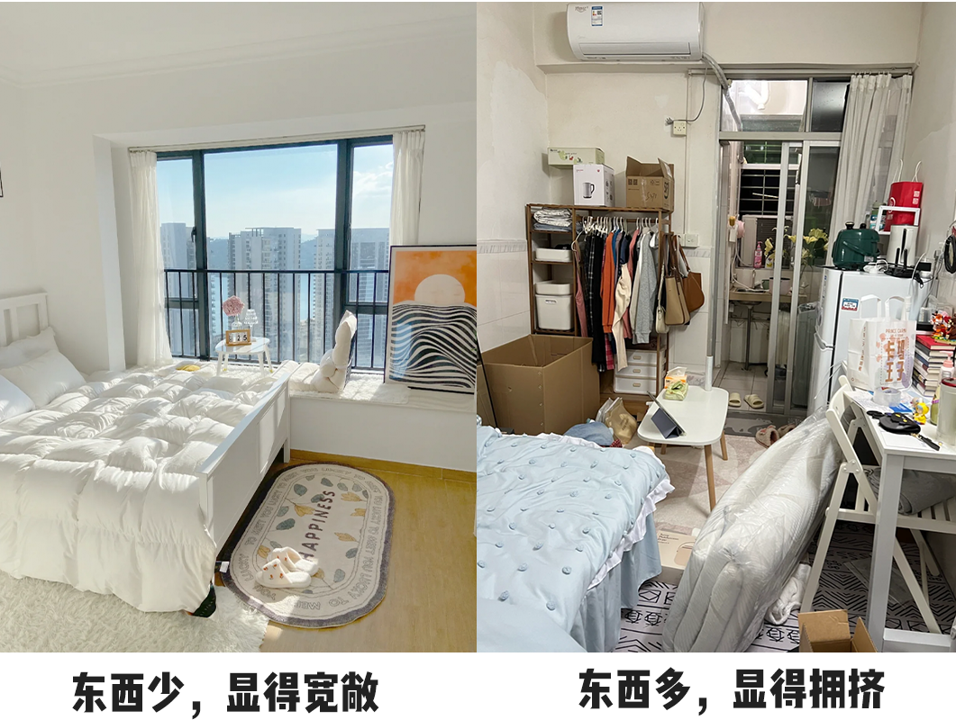 把中庭看作一个空荡荡的房间,只要往里面塞满家具后,房间没变,但看起来是不是就变挤变小了呢