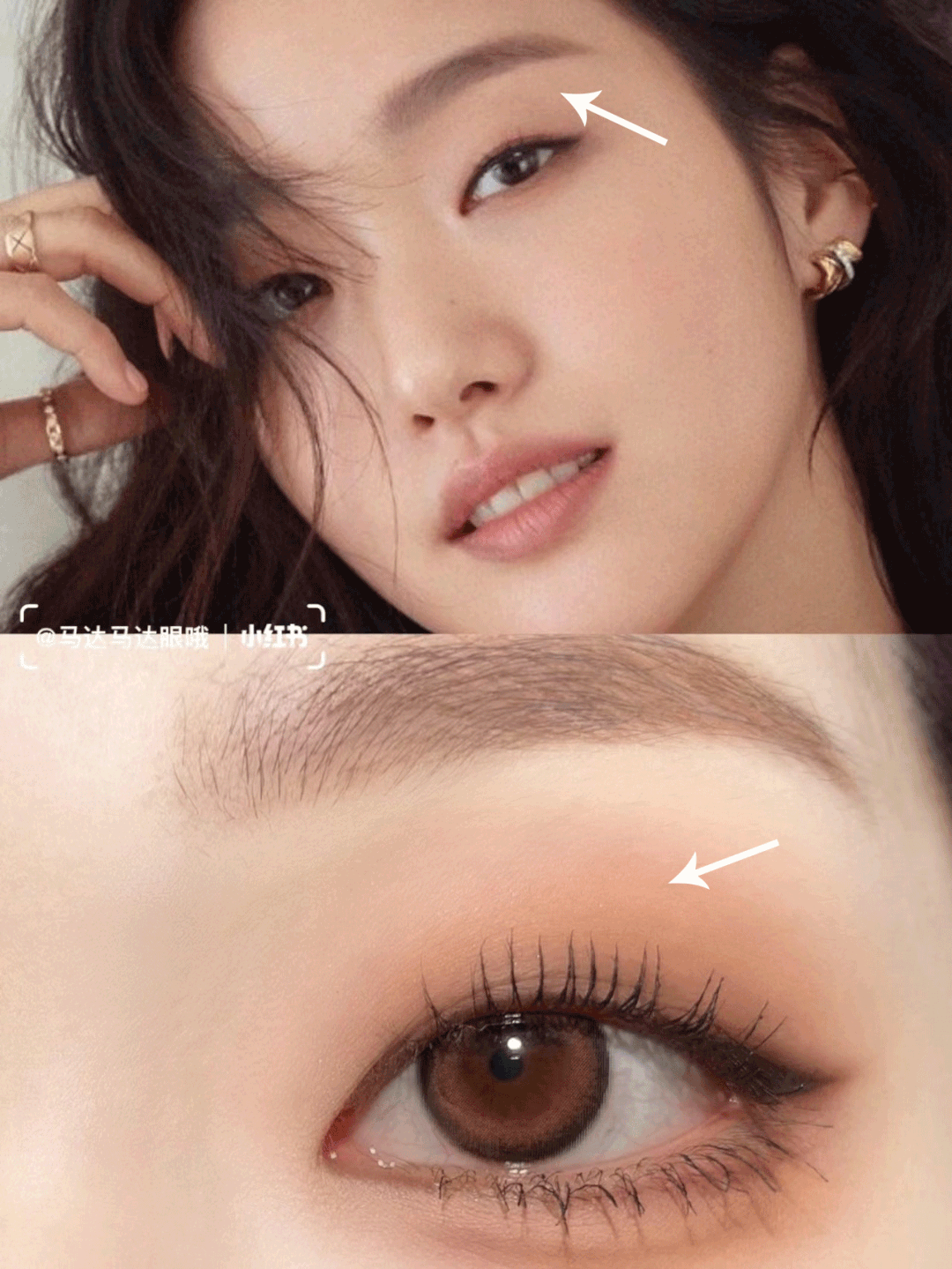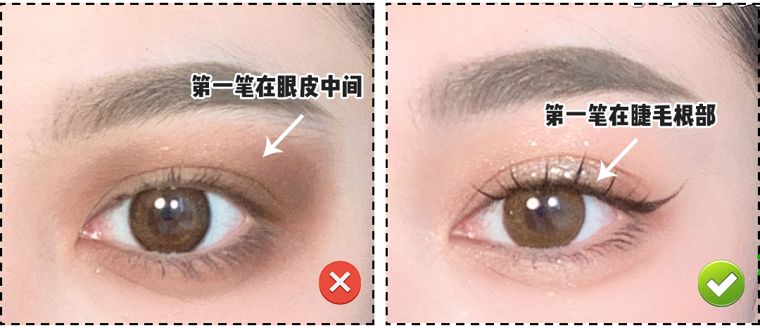 把妆容重放在下方,比如多花点功夫在卧蚕、下睫毛、下眼影上,这些都可以缩小面中的留白