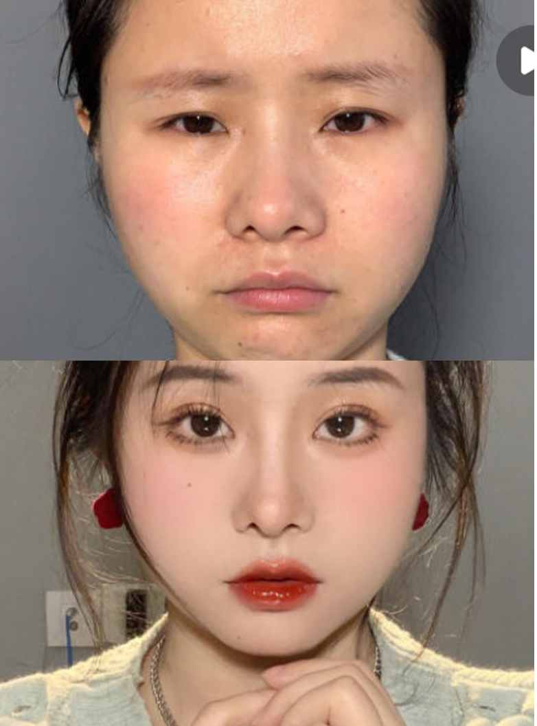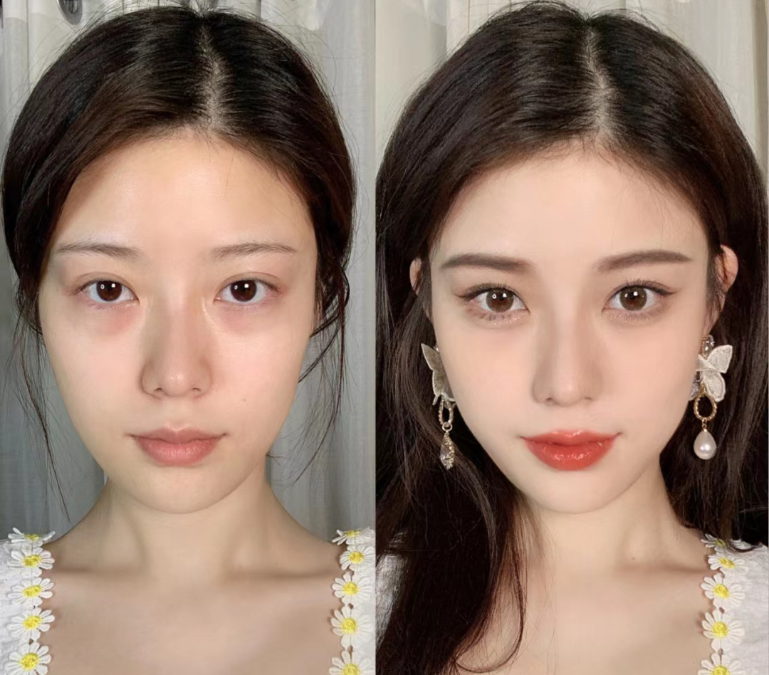 接下来说说困扰很多人的长中庭,通常长中庭长的姑娘,面中的空白会很多。不仅显得脸长,而且还很显老。